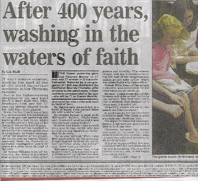 The Archbishop of Canterbury performs the washing of the feet ceremony in 2002, the first time that this had been performed in the last